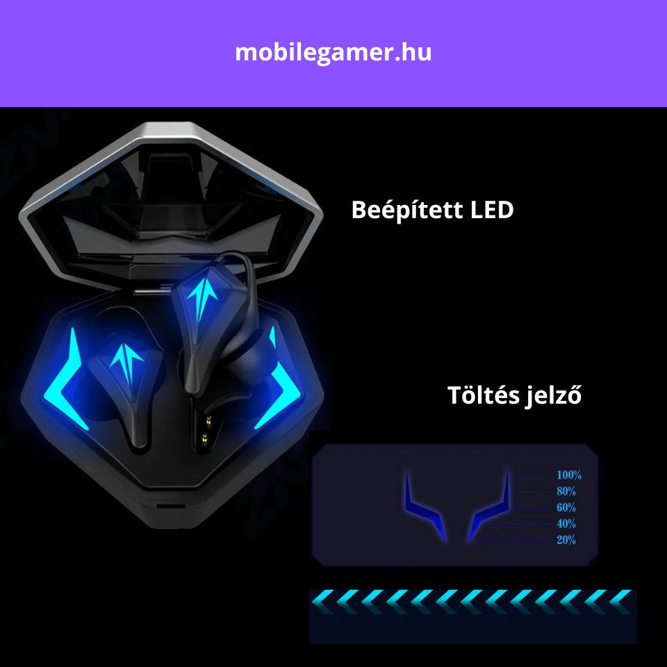 A K9 egy kifejezetten gamereknek kialakított vezeték nélküli bluetooth 5.1-et használü fülhallgató. Mobil gamereknek tökéletes választás. Zene hallgatás, játék és telefonálásra is használható. A töltő tok hozzá jár, amelybe gamer világítás van beépítve a tökéletes hangulatért.