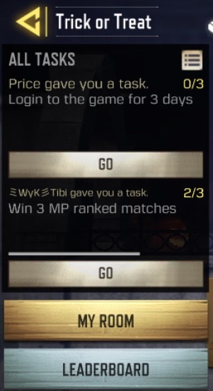 - A saját szobád “My Room” gombra kattintva pedig beállíthatod, hogy mi történjen ha nálad kopogtat valaki. Trick-eled, vagy Treat-eled, milyen fegyvert szeretnél mutatni a látogatóidnak, illetve azt is látod kik jártak nálad.